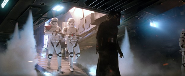 You hear that, right? Those five notes? That’s the sum total of Kylo Ren’s theme. It doesn’t seem like much at first glance, but there’s really a lot going on here. First, the sharp tone of that brass is designed to grab your attention, this is a character to pay attention to. As a result, even before we know who Kylo Ren is, we know that this is someone important. Second, and more importantly, these five notes are actually related to “The Imperial March.”