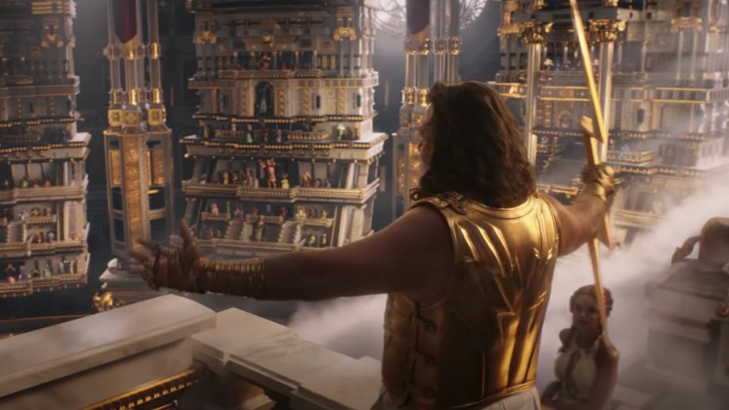 Battle sequences with Gorr aside, I think my favorite part of Thor: Love and Thunder is Omnipotence City where all the gods of the universe can be found. I was a little unsure about Russell Crowe playing Zeus, but within sixty seconds of Zeus opening his mouth I completely understood and approved of the casting because you quickly learn everything you need to know about this version of the god (none of it good). Now, this is a minor spoiler if you still haven’t seen it, but I’m very excited by the notion that Crowe’s Zeus will be appearing in future MCU films, at least I hope that’s what that one post-credits scene implied. But back to Omnipotence City itself: it was beautifully rendered. It’s like….it’s exactly where you’d imagine all the gods would live if they had a single home to go to, it’s like Mt. Olympus on steroids, etc. The point is, it’s beautiful to look at.